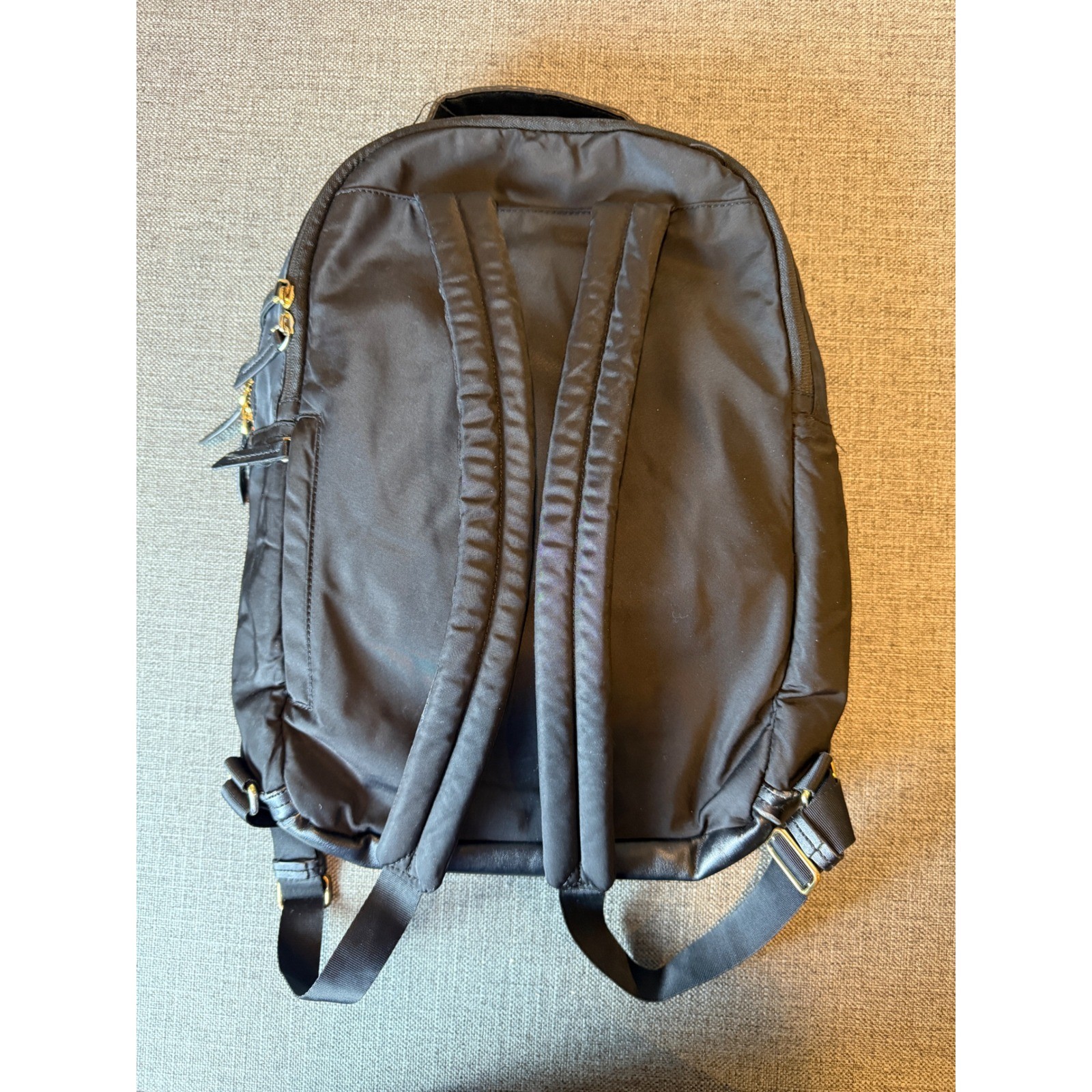 Organize your essentials with this versatile Targus backpack. Multiple zippered compartments, including a padded laptop sleeve, keep your belongings secure and easily accessible. The durable nylon exterior is complemented by stylish leather trim and gold-tone hardware, offering a sophisticated look for any adventure. The comfortable padded shoulder straps ensure easy carrying, making it perfect for daily commutes, weekend getaways, or air travel. Measurements: • Width: 12 in • Height: 17 in Material: Nylon, Polyester, Leather, Patent Leather Style: Backpack Department: Unisex Adults Theme: Classic, School, Designer Lining Material: Fabric, Polyester Features: Lined, Pockets, Inner Pockets, Laptop Sleeve/Protection, Adjustable Strap Handle/Strap Material: Polyamide, Polyurethane Pattern: Solid Closure: Zip Keywords: Targus backpack, laptop bag, work bag, travel backpack, school bag, commuter bag, tech backpack, business casual, student backpack, carry on, organized, nylon bag, gold hardware