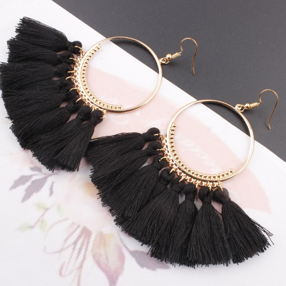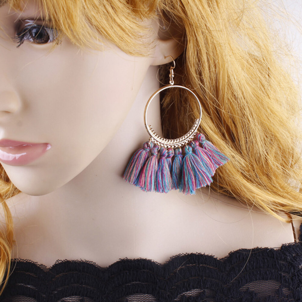 Description: 100% Brand New and high quality. Features: Material: Metal, Rope Color: Multicolor Size: 9cm Style: Boho Modeling: Fan Shape Type: Earrings Package Includes:1 Pair*Earrings Notice: 1. Please allow 2-3% error due to manual measurement. Please make sure you do not mind before you bid. 2. The colors may have different as the difference display, please understand.