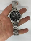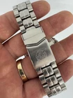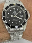 Date at 3:00 central second hand adjustable 60 min. Diver- bezel only anti clockwise casesize 40,3 mm; thick 13,8 mm; all stainless steel Screwed Crown; diameter 7 mm (25,4mm is 1 inch) WR 20bar water resistant high quality automatic movement with 21 jewels (Miyota 8215 manufactured by CITIZEN WATCH CO.,LTD) hardened mineral glas with DATE-Lens screwed bottom illumious hands and indexes high quality Stainless steel strap with protecting clasp (max. circumference 220mm)
