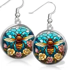 Honey Bee Honeycomb Boho Flowers Faux Stained Glass Art Print Handcrafted Photo Jewelry Earrings DESCRIPTION: Elegant 20mm (3/4") stainless steel bezel settings dangle from .925 solid sterling silver french wires. A top quality photo image , printed on a high definition photo printer, is sealed under a crystal clear glass dome which enhances the image and creates a truly unique pair of earrings. Nickel free, lead free. Solid sterling silver wires are a must for sensitive ears. Faux stained glass is achieved by sealing an image of a stained glass art print under a glass dome. Handcrafted in our home studio in Cleveland Ohio. Need a matching pendant? Or a matching brooch? Fridge magnet? Button pin? Cuff links? If you don't see it in our store, contact us and we will list it for you. Want to personalize a pair of earrings with your photo, words, a phrase, quote, name or anything special? Contact us and we will create & list them for you. ADDITIONAL INFORMATION: This item is not intended for children under the age of 5 because of choking hazard. As with all photo jewelry, these earrings are water resistant but should not be worn when bathing or swimming because they are not completely waterproof . Please keep in mind that monitors, devices and settings display colors slightly different and there may be a slight variation in the colors. All photos are enlarged to show even the smallest of details. Please refer to the details above for size. Visit My eBay Store for custom pendant necklaces and earrings including Scrabble tile pendants, stud earrings, hair pins, cuff links, rings, key chains and more. Contact us through eBay with any questions or for custom picture information.