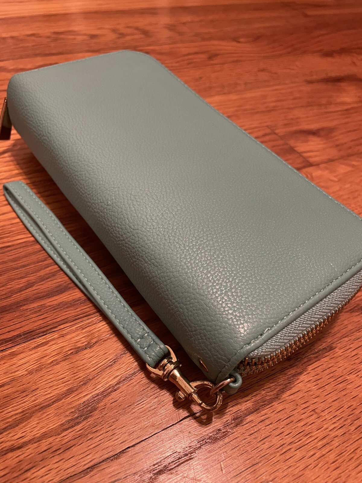 Wallet Wristlet Teal Clutch pre-owned but looks and works like new. Very spacious with many pockets for credit cards, gift cards, etc. Very spacious and useful!