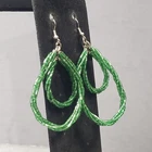 Up for sale is a set of beaded hoop earrings. They are silver tone and green in color . They are in good pre owned condition! Please view all posted pictures as they are part of the description. If you have any questions please ask. Please check out my store for more great deals that are listed every day!!