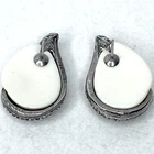 Teardrop Stud Earrings Pearlesque Stone Burnished Silver Tone Swirl Post Back In good preowned condition, no flaws Measurements: size 1" by 3/4", weight 0.3 ounces