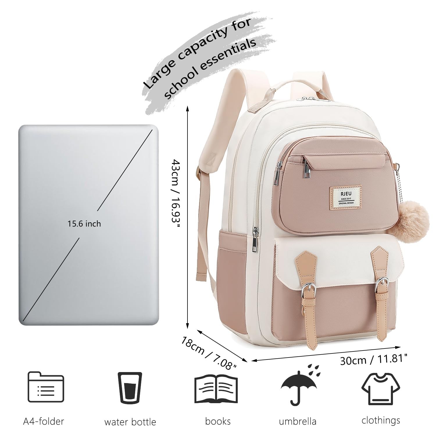 YOUR FOREVER PACK. Always be ready for work, school, travel, business trips and many other occasions for teen girls and women. Cute design and classic color variations go perfectly with your daily outfits. This multi-functional backpack purse designed with lots of room and pockets; with 15.6 inch padded laptop compartment / ipad sleeve; with smooth zipper; comfortable padded shoulder straps; with side pockets for water bottle and umbrella; with luggage sleeve to facilitate the trip. It can be used as backpack, laptop bag, school backpack, travel backpack, work bag, leather backpack, mom bag, sports backpack, city backpack. Beautiful gifts for ladies, women, teenagers girl. BACKPACK FOR DAILY USE √ Leisure √ Shopping √ Church BACKPACK FOR WORK / BUSINESS(WORK BAG) √ Teacher - planner,binder,A4 folder √ Nuese - clipboard,portadocumentos,lunchbag √ Veterinary √ Artist - colored pens,drawing book √ Mom(baby backpack) - diaper,water bottler,toys,clothes BACKPACK FOR TRAVEL (viaje) √ Weekender √ Business trip √ Perfect size; with luggage sleeve; carry on backpack flight approved CUTE BACKPACK FOR SCHOOL (escolar) √ Middle school √ High school √ College universidad √ Nursing clinical √ 6th grade;7th grade;8th grade √ There are many kawaii colors to choose from ♥【Large Capacity with Lots of Pockets】 Roomy main compartments and multiple pockets to keep all of your gear secure and organized; The main compartment included 1 laptop sleeve and 1 tablet sleeve for organizing school supplies, travel accessories, work essential. Front compartment with a lot of small pockets for pens and notes. Very suitable for school use! ♥【Well Thoughtful Design】Lovely plush ball + convenient top-handle + practical zipper. The heavy duty fabrics are water-repellent, dirt-resistant and easy to care for. Strong padded shoulder strap provides relief when carrying heavier loads. Both side pockets for water bottle with elastics. ♥【Safe Travel】Secret pocket on the back for organize value items. Luggage sleeve for lightweight traveling. The anti-theft zipper supports self-installation of the lock. The standard size is ariline approved, suitable for underseat. ♥【Dimensions】 Suitable for 15.6in Laptop: 7.08 x 11.81 x 16.93-inch. The perfect size for all your essentials and suitable for cabin. This girls' backpack is functional and convenient with trendy style. ♥【Wonderful Gifts】 It is a good gift for your kids. It is suitable for teen girls using on middle school, high school, college, camping, travel.