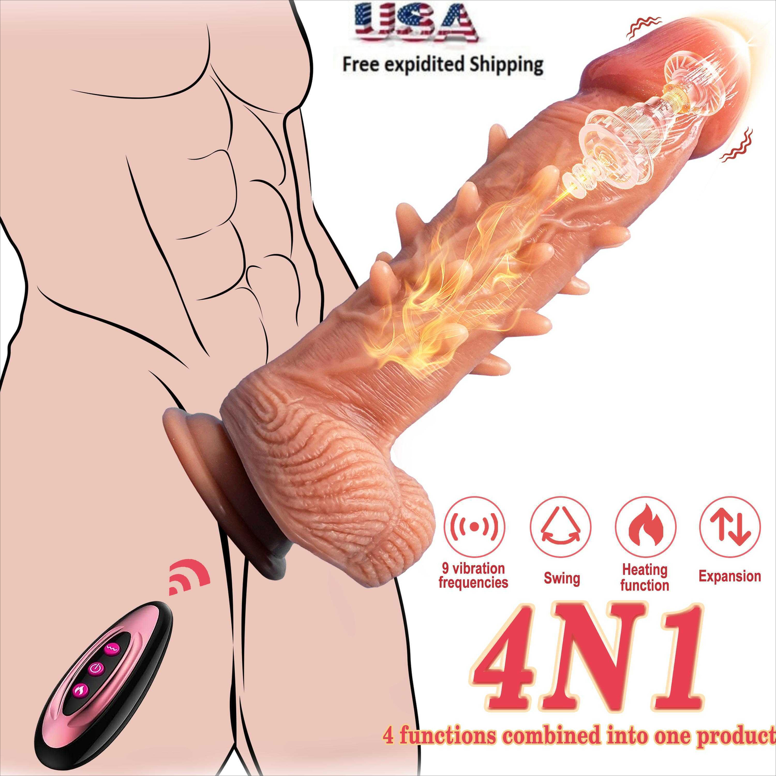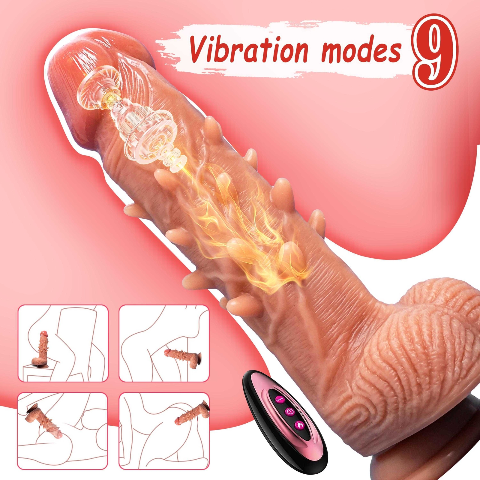 <> <> <> Function: Vibrating&Heating&Thrusting&Rotating Dildo About this item: 【9 Vibration modes】With 9 vibration patterns that range from soft to deep and powerful, this is the masterpiece to get your pulses racing. Wireless remote control, vibrator sex toy for men and women, it's the perfect dildo for men toy for solo and couples play that love some shimmer and shine in their life. 【Charging & usage duration】Please charge the product for the first time.It takes about1.5-2 hours for a complete charge.The appliance can be used for 45-90 minutes after full charging.You don't have to run out of power before charging. 【Soft material & Easy to clean】We come to you in the safest, most hygienic material available - premium silicone. Completely hypoallergenic, non-reactive and safe for sensitive skin, this adult sex toys are extra easy to clean.Before and after each use of the product, please clean it thoroughly. Specifications: 1. Rated voltage 3.7V, rated current8A 2. Material: Liquid silicone 3. Waterproof: life waterproof 4. Charging time: about 2 hours to full, can be used continuously for a bout 45-60 minutes 5. Remote control battery: 12V 27A 6.Product size:Total length: 21cm Penis length: 16cm Maximum width: 4.5cm Package Content: Vibrator*1 Charging cable*1 Remote control*1 Manual*1