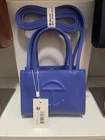 The Telfar Small Painter's Tape Blue Shopping Bag is a stylish and sought-after piece in the Telfar Collection. Long SOLD OUT this has not been used. Only display in my closet the condition is flawless, basically, new with tags. The bag is vegan leather with a magnetic closure, this shoulder bag features a solid blue exterior with a unique Painter's Tape color throughout. The bag showcases the signature logo accents and includes a cross-body strap for added versatility. As a designer piece from the popular brand Telfar, this bag is a must-have for fashion-forward individuals looking to make a statement! ALL SALES ARE FINAL. ASK QUESTIONS BEFORE PURCHASE. THX!