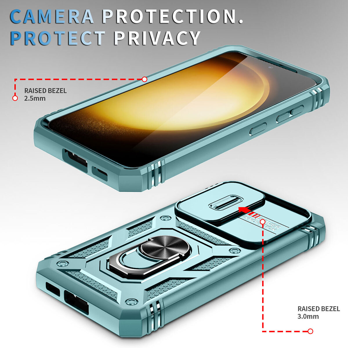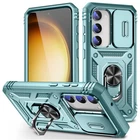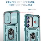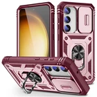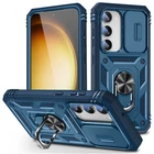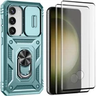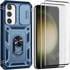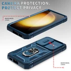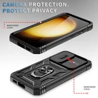 Features: ▪ High Quality: The frame is made of flexible TPU silica gel which avoids your phone falling from high place. The back side of the case is made of hard PC that provides scratch protection. ▪ with Side Camera Cover: Slide cover design for protecting and hide the camera perfectly. ▪ Built-in kickstand: 360 kickstand Ring Stand offers convenient hands-free viewing from either landscape or portrait two different angles; ▪ Magnetic Car Mount: Built-in metal magnetic sheet which can be directly adsorbed stably to the magnetic car mount holder. (Not includes the magnetic car mount holder.) ▪ Precise Cutouts: Precise design, Easy access to all ports, buttons, and features. ▪ Raised edges design ensures extra protection for the screen and camera. Case only, cell phone is not included Compatible With: For Samsung Galaxy S23 For Samsung Galaxy S23+ For Samsung Galaxy S23 Ultra For Samsung Galaxy S23 FE Package Includes:(optional) 1x Shockproof Ring Stand Cover with Slide Camera Case Or 1x Shockproof Ring Stand Cover with Slide Camera Case 2x Tempered Glass Screen Protectors