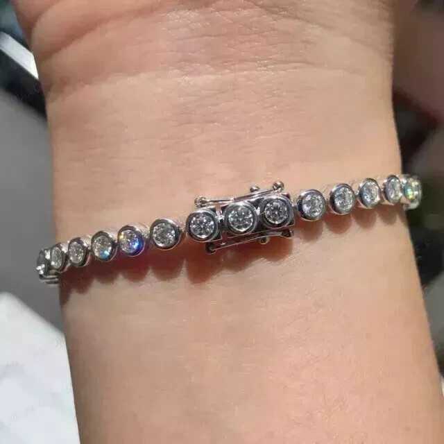 14k White Gold Plated 10Ct Lab Diamond Tennis Bracelet 7.25 Inch