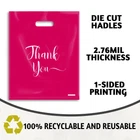 Description Our 100 Pack thank you bags for business small will safely hold merchandise and medium-sized items including apparel, books, samples, favors, handouts, toys, crafts and hobbies, and more in a convenient easy-to-carry bag. These bags feature high tensile strength and high quality 2.36 mil thickness to best protect your products and goodies. HIGH-QUALITY POLYETHYLENE is one of the most popular materials in bagging. Perfect for protecting from the air, dust, water, and bacteria, these high-quality bags are durable, affordable, and specifically designed to not easily rip, tear, wrinkle, fog, split, break, or rupture. SHOW OFF YOUR BRAND: When you need a thank you bag on hand in order to quickly package the items you need to carry or display, check out our inventory of merchandise Bags. We are committed to providing the highest quality in the industry for the best value. Thank You Bags for Boutiques are versatile and can hold a variety of items for many occasions. They are great thankyou bags for small business, small retail shops, boutiques, craft fairs, festivals, trade shows, conventions, receptions, events, parties, bridal showers, baby showers, garage sales, craft shows, birthdays, and much more! And, they can be used for many purposes such as merchandise bags, shopping bags, retail bags, reusable plastic bags, party favor bags, goody bags, shower gift bags, wedding gift bags, plastic bags with handles, boutique supplies, plastic packaging bags, vendor event supplies, product bags, merchandise bags, T-shirt bag, boutique bags for clothes, customer bags, retail shopping bags, die-cut bags, craft show supplies, convention bags, event bags, boutique accessories, craft fair supplies, and many other applications. High Quality Black Thank you Bags With Handle: Extra thick 2.36 Mil 100% new LDPE (Low-Density Polyethylene) material, our heavy duty glossy plastic merchandise bags are 100% recyclable and can be used repeatedly, while other plastic thank you shopping bags are only 1.75 Mil which is thin and tear easily. Thank you Bags for Business Small: Perfect size 9x12, 12x15, 15x18 Inch plastic shopping bags will safely hold merchandise and medium-sized products including apparel, books, favors, samples, handouts, crafts, toys, and hobbies. Feel confident with your purchase as our thank you plastic bags are not only stylish but are also 100% reusable. Your eco-conscious customers will also be grateful knowing they can continue to use these bags over and over. VERSATILE Use Plastic Retail Bags: 100 Pack Bulk boutique shopping bags for packaging products are great for small boutique and retail stores, also perfect as wedding thank-you favors, boutique bags, teacher appreciation gift bags, convenience stores, garage sales, trade shows, events, goodie bags, a thank you gift for baby showers, gifts for bridesmaids, or to accent your gold party decorations. Durable Merchandise Bags with Handles: We use an extra-thick 2.36 mil low-density polyethylene plastic material that is tear-resistant and much stronger than what most other brands offer, the die-cut handles are strong and offer a firm but comfortable grip without over-stretching or breaking. Impress your clients: The perfect thank you shopping bags for small business to make your client feel good about their purchase and return again and again.