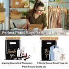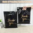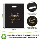 12x15 inches Thank You Merchandise Bags: Thank You Bags with Handle, made from 1.85 mil recyclable plastic material, are durable and ensure repeated use. These Thank You Gift Bags are ideal for Small Business Stores. Our Boutique Bags are perfect for your small business in retail stores, boutiques, birthday parties, weddings and trade shows. Ideal for a variety of products such as crafts, artwork, books, notebooks, documents, clothing, jewelry, cosmetics, skin care, toys, , light groceries, desserts, breads, cookies, and other items. Show your appreciation with these Thank You Bags. Package Contains: 12x15 inches Thank You Merchandise Bags *30 【Thank You Retail Bags】The black Thank You Merchandise Bags are emblazoned with a prominent gold "Thank you" logo, giving Retail Shopping Bags for Small Business Stores a stylish look. Impress your customers and grow your business with these beautiful Plastic Shopping Bags. 【Plastic Shopping Bags with Handles】These Reusable Gift Bags have sturdy, comfortable handles that are die-cut for ease of use and a comfortable grip that won't overstretch or break. Leave your customers with a comfortable shopping experience. 【Wide Range of Uses】These Thank You Gift Bags are ideal for Small Business Stores. Our Boutique Bags are perfect for your small business in retail stores, boutiques, birthday parties, weddings and trade shows. Ideal for a variety of products such as crafts, artwork, books, notebooks, documents, clothing, jewelry, cosmetics, skin care, toys, light groceries, desserts, breads, cookies, and other items. Show your appreciation with these Thank You Bags. 【What You Will Get】30 pack Goodie Bags measure 12x15 inches. Black Plastic Thank You Bags with Handle, made from 1.85 mil recyclable plastic material, are durable and ensure repeated use.