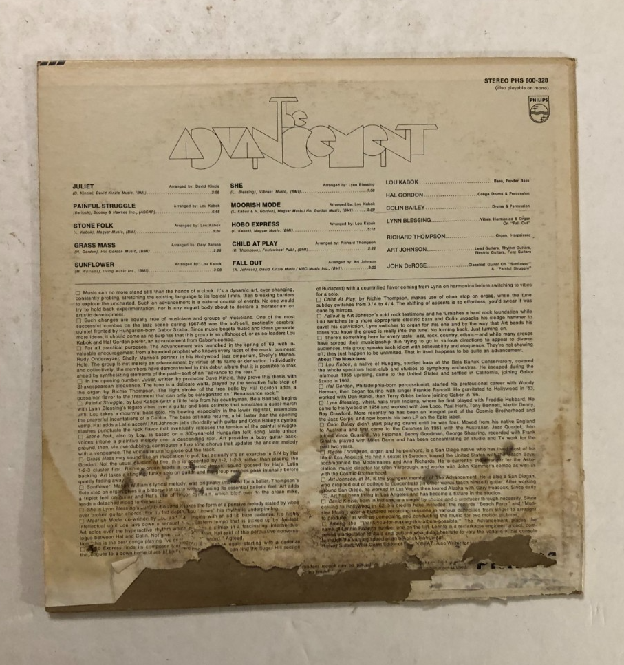 The product is a vintage 1970 LP vinyl record by The Advancement, released under the Philips label. The record is in stereo format, with a speed of 33 RPM and a black vinyl material. It falls under the genres of rock and psychedelic rock, reflecting the style of the 1970s era. The record features original cover artwork and is a 12" size LP. This collectible item is a rare find for music enthusiasts looking to add a piece of 1970s music history to their collection. Sale conditions for all new/old stock vintage (20+ years) still-sealed record albums only *Please read the condition description carefully. *Visual grading only, under a clear 60 watts light bulb, to the best of my ability. *No returns accepted on all sealed albums if opened or shrinkwrap removed. *All returns must be in same condition when received. *All sealed albums are listed and sold as collectible, investment, and/or future PSA grading, and not as a playing copy. *For playing and enjoyment, I recommend an excellent to near mint copy. *I will list only albums that is in decent condition and playable for listening. *Original or replacement paper sleeve. *Record with no warping. *Cut-out / Punch hole. *Please note: (New and sealed only) Album cover with minor creases, and flaws such as dented and/or creases corners, shrink-wrap with partial tears, and ring wear are possible. *If you have any questions or concerns before buying, feel free to contact me. Thank you. Vintage 70s Philips Records PHS 600-328 Stereo The Advancement "The Advancement" (1970) LP Condition: Pre-owned.