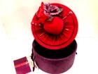 The Bearington Collection Red Hat Box with 2 Hat Pins This vintage hat box from The Bearington Collection is a must-have for any hat enthusiast. The box comes in a vibrant red color and features two hat pins on the front. Perfect for everyday use or as a collector's item, this hat box is a great addition to any wardrobe. The brand is known for its quality and style, making this box a great way to show off your personal sense of fashion. Whether you're looking for a unique storage solution or a stylish accessory, this hat box is sure to please. Apprx. Diameter of the bottom of the box: 7.25" Apprx. Height: 6" Inventory: