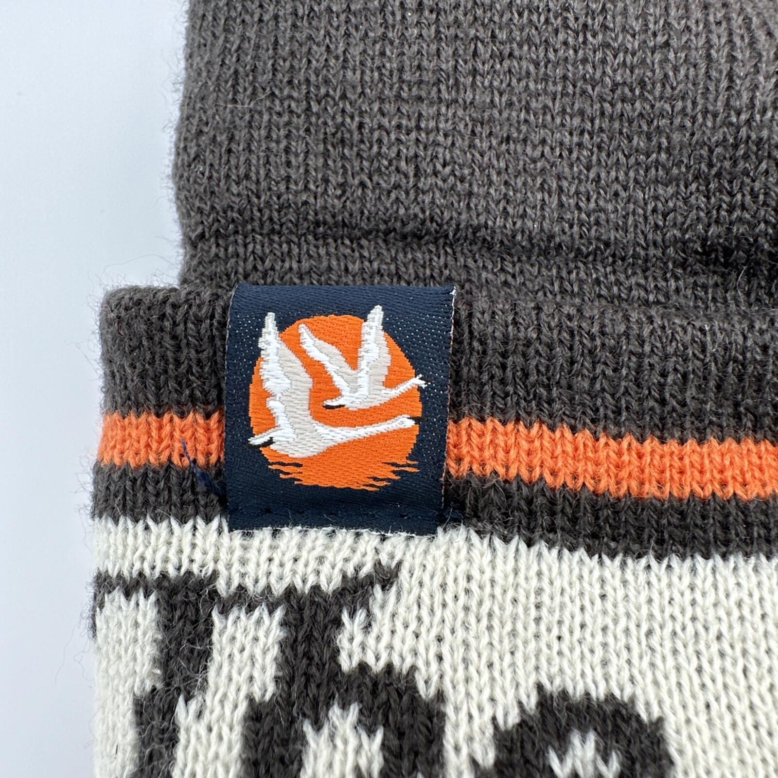 This beanie is designed with a mountain and bird theme, featuring a pom pom on top. It is a one size fits all, multicolor winter hat with a unique design that is suitable for both men and women. Its style is perfect for the colder seasons, adding a touch of nature-inspired flair to your winter wardrobe.