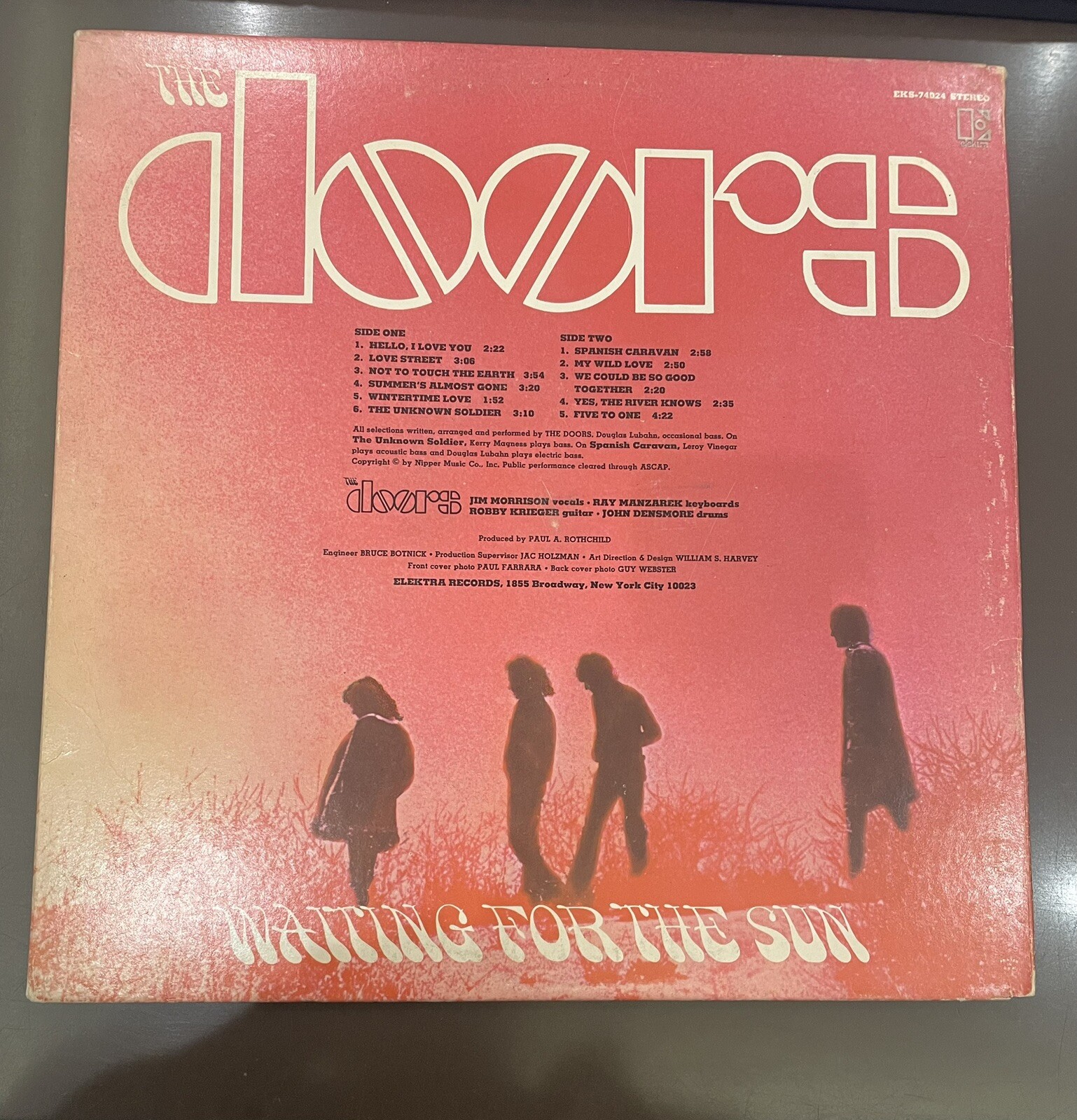 ★ THE DOORS – WAITING FOR THE SUN 1968 VINYL LP ★ Elektra EKS-74024 Mono Pressing – VG+ / Play-Tested – Gatefold Sleeve Classic 1968 album featuring “Hello, I Love You”, “The Unknown Soldier”, “Five to One” and more. Condition: • Record: VG+ – light surface marks, plays excellent with minimal noise • Sleeve: VG+ gatefold – minor ring wear, no splits, clean inside • Labels: clean, no writing • Fully play-tested A/B sides – sounds fantastic FREE shipping – packed in a proper vinyl mailer with cardboard stiffeners. Ships same/next day from Brooklyn, NY. Best Offers welcome – 6 watchers and climbing fast! Questions or want a quick audio clip? Just message me.