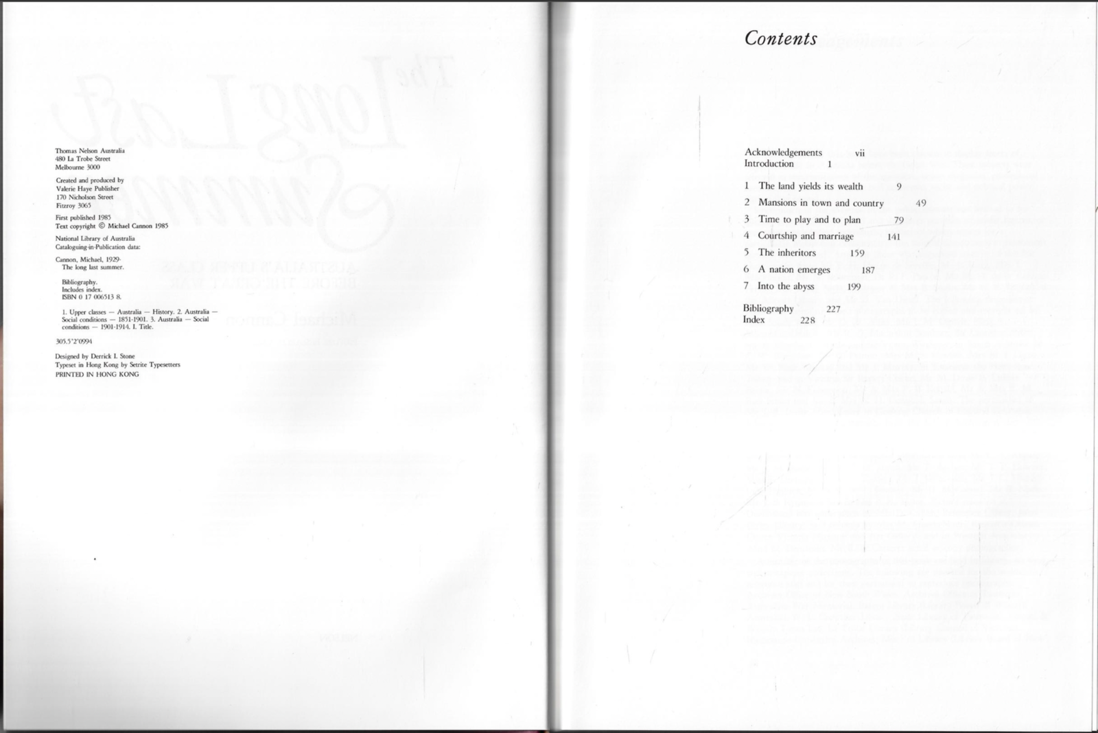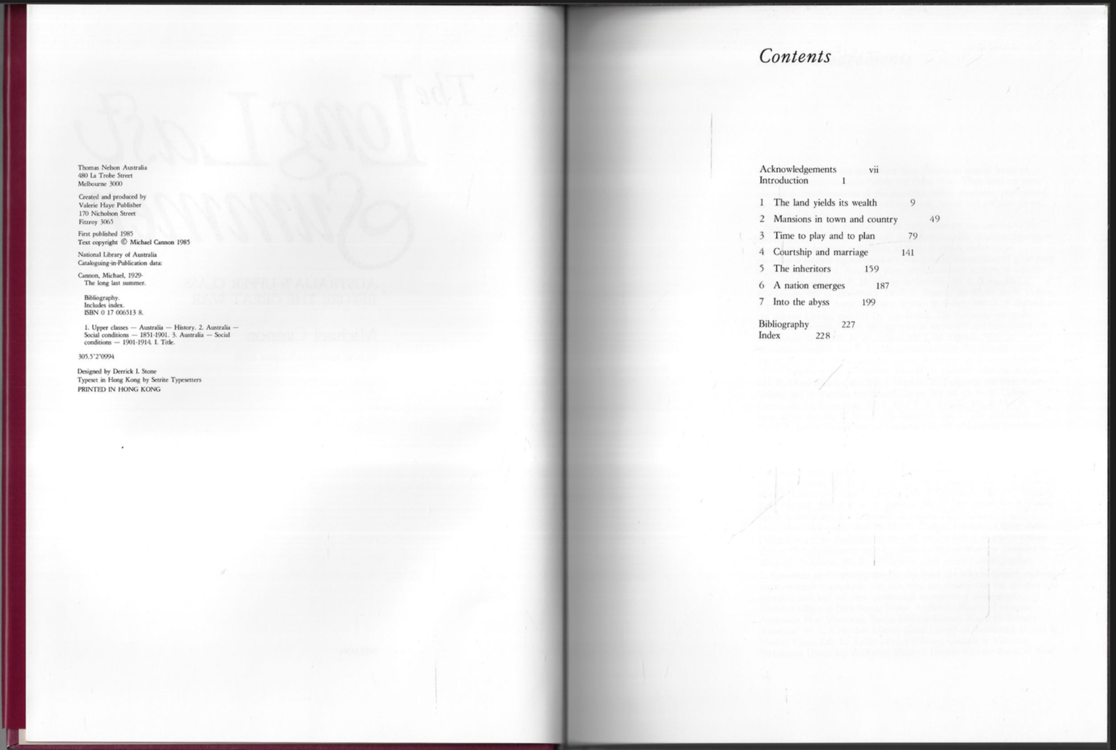 The Long Last Summer - Australia's Upper Class Before The Great War ; by Cannon The Long Last Summer - Australia's Upper Class Before The Great War ; by Cannon This copy is in VERY GOOD used condition overall. The dust-jacket has worn edges (see scan). The boards and binding are in very good order. The pages DO NOT have any names, inscriptions or marking of text. Click here to visit PATRICK ANDREAS QUALITY BOOKS Store Home Page . Listing and template services provided by inkFrog