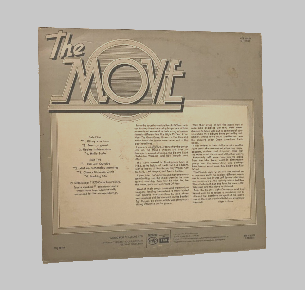 The Move MFP 5018 Stereo MFP EMI Records UK Import Rock Vintage 1974 LP Vinyl is a rare gem for collectors and music enthusiasts of the 1970s era. This 12" vinyl record features the iconic British indie rock band The Move, known for their groundbreaking music and energetic live performances. With the original cover and stereo sound, this LP captures the essence of the era and is a valuable addition to any music collection. The black vinyl material and near mint grading make it a sought-after piece for fans of pop and rock genres from the 1970s. Sale conditions for all new/old stock vintage (20+ years) still-sealed record albums only *Please read the condition description carefully. *Visual grading only, under a clear 60 watts light bulb, to the best of my ability. *No returns accepted on all sealed albums if opened or shrinkwrap removed. *All returns must be in same condition when received. *All sealed albums are listed and sold as collectible, investment, and/or future PSA grading, and not as a playing copy. *For playing and enjoyment, I recommend an excellent to near mint copy. *I will list only albums that is in decent condition and playable for listening. *Original or replacement paper inner sleeve. *Record with no warping. *Please note: (New and sealed only) Album cover with minor creases, and flaws such as dented and/or creases corners, shrink-wrap with partial tears, and ring wear are possible. *If you have any questions or concerns before buying, feel free to contact me. Thank you. Vintage 70s MFP Records MFP 50158 Stereo The Move "The Move" (1974) LP Vinyl Condition: Pre-owned.