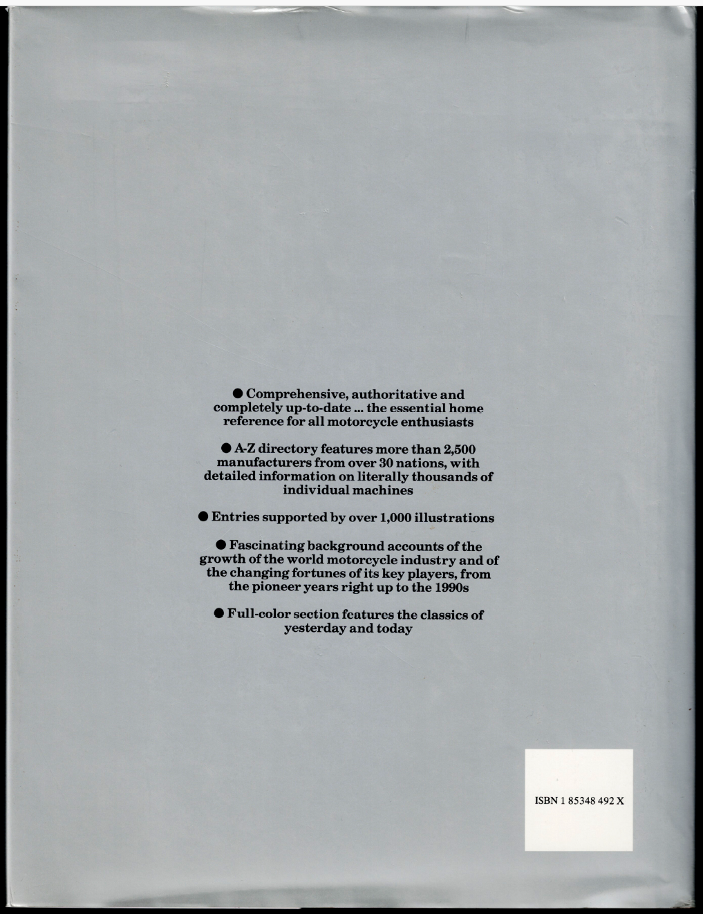 The New Illustrated Encyclopedia of Motorcycles ; by Tragatsch & Woolley - HC The New Illustrated Encyclopedia of Motorcycles ; by Tragatsch & Woolley - HC This copy is in VERY GOOD used condition overall. The dust-jacket has light marks and some edge wear (see scans). The boards and binding are in very good order. The pages have lightly toned edges, they DO NOT have any names, inscriptions or marking of text. Click here to visit PATRICK ANDREAS QUALITY BOOKS Store Home Page . Listing and template services provided by inkFrog