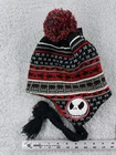 The Nightmare Before Christmas Beanie Adult Red Acrylic Poly Ear Flap Tassel Pom
