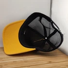 This is The North Face Foam Trucker Hat in a vibrant yellow color with a black mesh back and a stitched logo on the front. The hat features a snapback closure for an adjustable fit, making it suitable for men in one size. With a stylish solid design and outdoor theme, this hat is perfect for adding a sporty and casual touch to any outfit. Perfect for outdoor activities, this snapback hat combines functionality with The North Face's renowned brand quality.