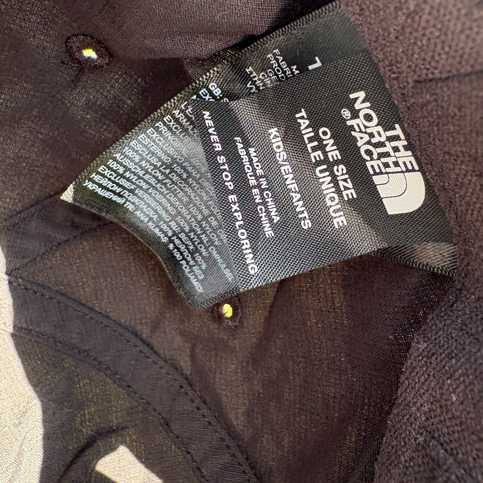 Brand:The North FaceSeason:Summer, Spring, Fall, WinterSeller Notes:“New without Tag - has description tag inside hat”Features:AdjustableDepartment:TeensTheme:ClassicColor:BlackSize:One SizeStyle:Baseball CapOccasion:CasualMaterial:NylonPattern:Solid