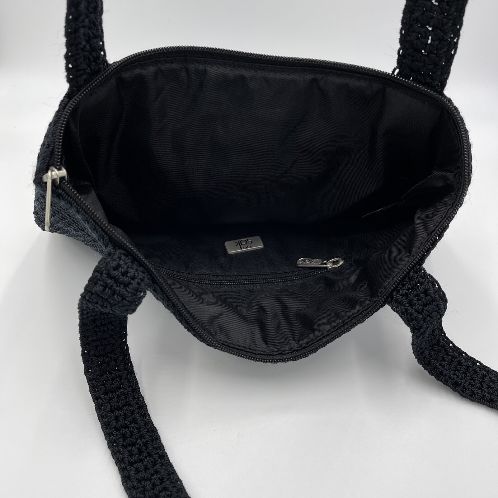Handbag "The Sak" Black Crochet with Zip Closure, inside and outside zip pocket. Shoulder drop 14”