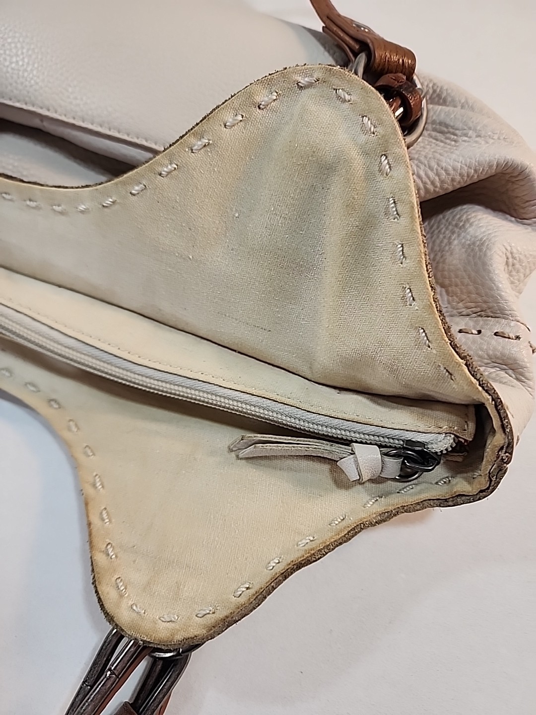 The Sak with pebble leather in cream and brown. It's a great bag, but it needs cleaned and shows signs of wear.