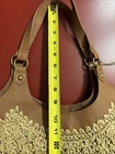 $ 43.3New Genuine Leather Small Bag Floral Embossed 6x8x3 | Dark Brown With Gold