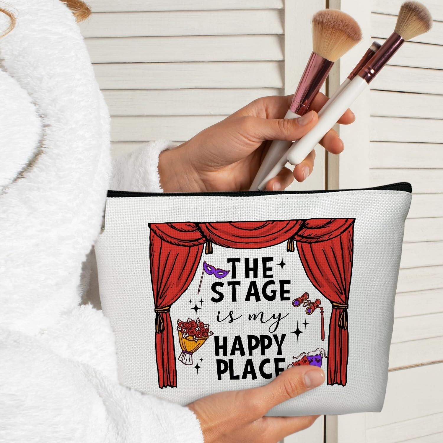 Theatre Actor Makeup Bag - Stage is My Happy Place, Cosmetic Bag for Women Large Capacity Cosmetic Bag Appreciation Gift for Family, friend, Travel Accessories Organizer Storage Makeup Bag With Zipper Product Details Color: Stage is My Happy Place Brand: bxtala MPN: 003 UPC: Does not apply EAN: Does not apply Product Dimensions: 9.5 x 1.7 x 7 inches Item Weight: 1.6 ounces Department: Unisex Adult Manufacturer: bxtala Country of Origin: China Item model number: 003 Multi-purpose Bag: This makeup bag can not only be used as a purse, makeup brush bag, but also as a pencil pouch, travel bag, electronic accessories organizer, accessories storage bag and more. You can use our travel bags to organize your belongings when going out for fitness, traveling, business trips, work, camping, etc. Makeup bag Dimensions: Approximately 7 x 9.5 inches, the makeup bag has zippers to prevent things from falling out. Easily load makeups such as lip gloss, mascara, powder, eye shadow, toiletries and more. Material: Made of high-quality cotton and linen, lightweight and not easily damaged, it can be washed repeatedly and used for a long time. It doesn't take up a lot of space and can be easily placed in your satchel, suitcase, backpack, etc. Gift Best Choice: Our makeup bags are perfect for women, daughter, best friends, co-workers, wife, family members, mom and more. It will be a special Christmas gift, Anniversary gift, New Year gift, Mother's Day gift, Graduation gift, Valentine's Day gift. Multi-purpose Bag: This makeup bag can not only be used as a purse, makeup brush bag, but also as a pencil pouch, travel bag, electronic accessories organizer, accessories storage bag and more. You can use our travel bags to organize your belongings when going out for fitness, traveling, business trips, work, camping, etc. Makeup bag Dimensions: Approximately 7 x 9.5 inches, the makeup bag has zippers to prevent things from falling out. Easily load makeups such as lip gloss, mascara, powder, eye shadow, toiletries and more. Material: Made of high-quality cotton and linen, lightweight and not easily damaged, it can be washed repeatedly and used for a long time. It doesn't take up a lot of space and can be easily placed in your satchel, suitcase, backpack, etc. Gift Best Choice: Our makeup bags are perfect for women, daughter, best friends, co-workers, wife, family members, mom and more. It will be a special Christmas gift, Anniversary gift, New Year gift, Mother's Day gift, Graduation gift, Valentine's Day gift.