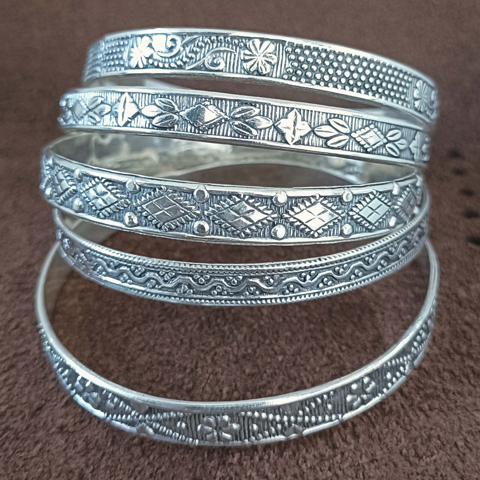 Thick West Indian Set Of 5 Handmade Bangle Solid925 Sterling Silver ,AK1212 PLEASE CAREFULLY READ OUR POLICY BEFORE YOU BID!! Please read our policy thoroughly. If you do not agree with our policy please refrain from bidding. The price we set for our jewelry/beads/loose beads/cabochon/cut-stone are the best price ever in the market today! Even with shipping added, you are still getting an unbelievable deal. Please keep in mind we don't give any discount on our item price or S&H, our price is way better than retailers, wholesalers, or factory suppliers out there. You won't find better prices on these unique pieces anywhere on the internet or in a retail store. Please be considerate of our S&H polices before leaving any feedback and DSRGs (Detailed Seller Ratings). If for any reason you are not satisfied with your purchase, please contact us first before leave us feedback. Your satisfaction is our #1 priority. Product Pictures: All jewelry/beads/loose beads/cabochon/cut-stone photos are taken by professional photographers. They use many photo equipment, like Flash, Day Light and etc. Some of the stone color might have effected a little. (Example: An amethyst stone is dark purple color, under the flash and lights it might affect the color a little and it shows little light purple instead of dark purple.) If you bring the jewelry/beads/loose beads/cabochon/cut-stone outside under the sunshine you will see the same piece showing under the day light. Please also note we have tried to keep the images as accurate as possible; however there might be some color variations in the images published on our store and the real product due to light effects & photography. Shipping & Handling Charges: FREE SHIPPING For International buyers: FREE SHIPPING We ship only registered mail with tracking numbers ( We are not responsible for customs & duties in your country ) Shipping Time & Delivery Time: Orders are shipped within 2 to 5 days, excluding orders made on Friday through Sunday. Domestic delivery takes 10-14 business days. International orders can take longer 20-25 days to reach. Please be patient ! Emails are answered Monday to Friday excluding Weekends & Holidays. Since we receive many emails daily. Save Big!!! With Combining Items: We gladly combined, 100 items above we send shipment via ups service in usa, in uk yodel service and 200 items above, we will send via dhl Express or Ups Express with 100% tracking. Payment Methods: As Per Payment Policy of eBay Please send all payments within 7 days from the end of the auction or fixed price. Non-Paying Bidders: By bidding, you agree to all our terms & conditions. If payment is not received within 15 to 20 calendar days after the close of this auction, you will automatically be in non-payment and your right to the item (s) will be given up. We will then file a Non-Paying Bidder Alert to eBay, which can result in you being suspended indefinitely from eBay. Return policy: We are very confident on our all type of beads/cabochon will meet your expectations, your satisfaction is our priority. However, if for any reason you are not satisfied with our product, you may return your order within 30 days from the date of shipment. The item must be returned in its original condition. FEEDBACK: Positive feedback is greatly appreciated and we will do the same in return. If you are unhappy for any reason, please do not leave Negative or Neutral Feedback and allow us the opportunity to resolve any issue(s). We are very fair and easy to deal with. Thank You! We offer a 100% Satisfaction Guarantee of our exclusive handcrafted beads collection and cabochon collection, studded with gemstones. I list my all items in wholesale price. It's our pleasure to do business with you. Sincerely,