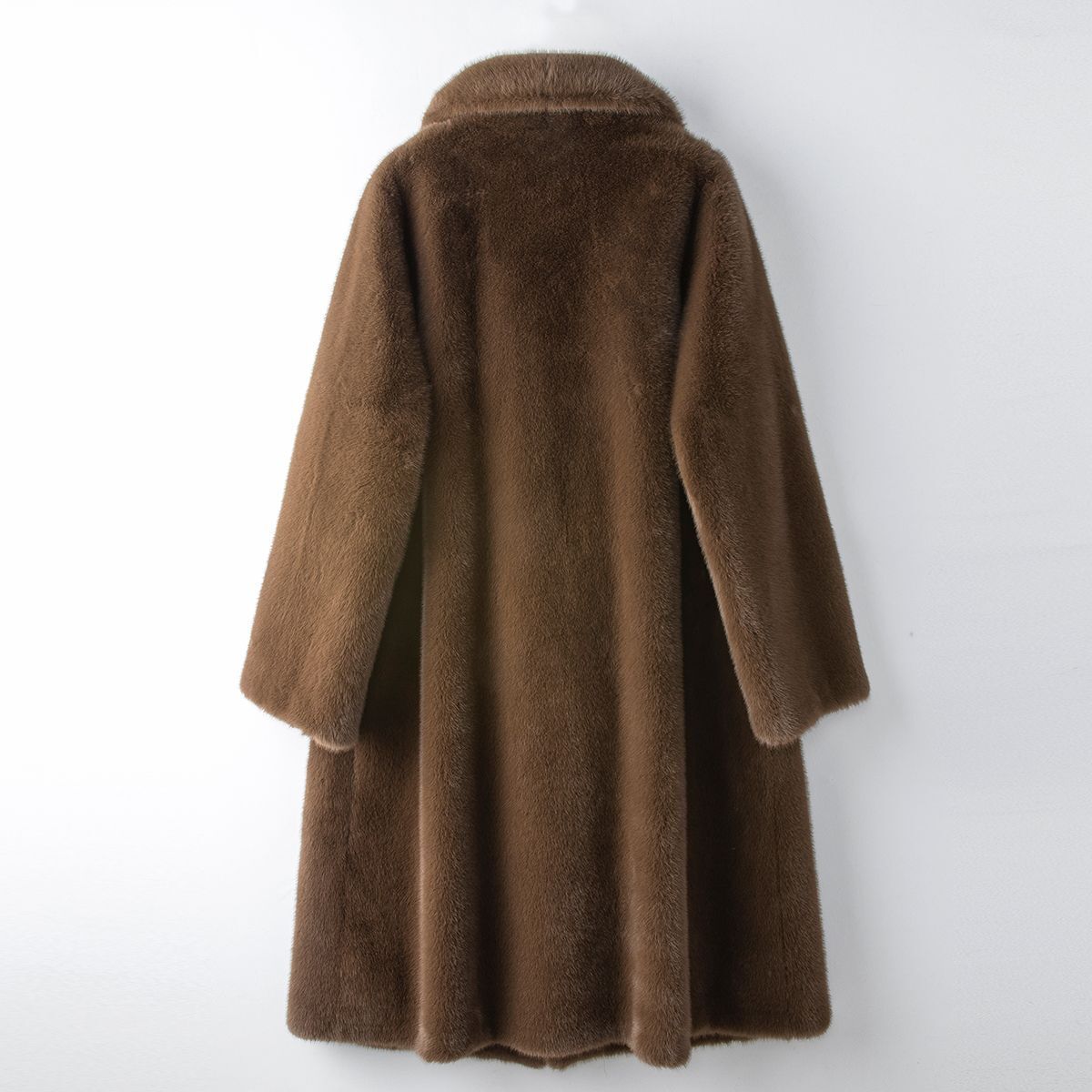 Luxurious Sable Collar Faux Fur Mink Coat Warm Winter Jacket