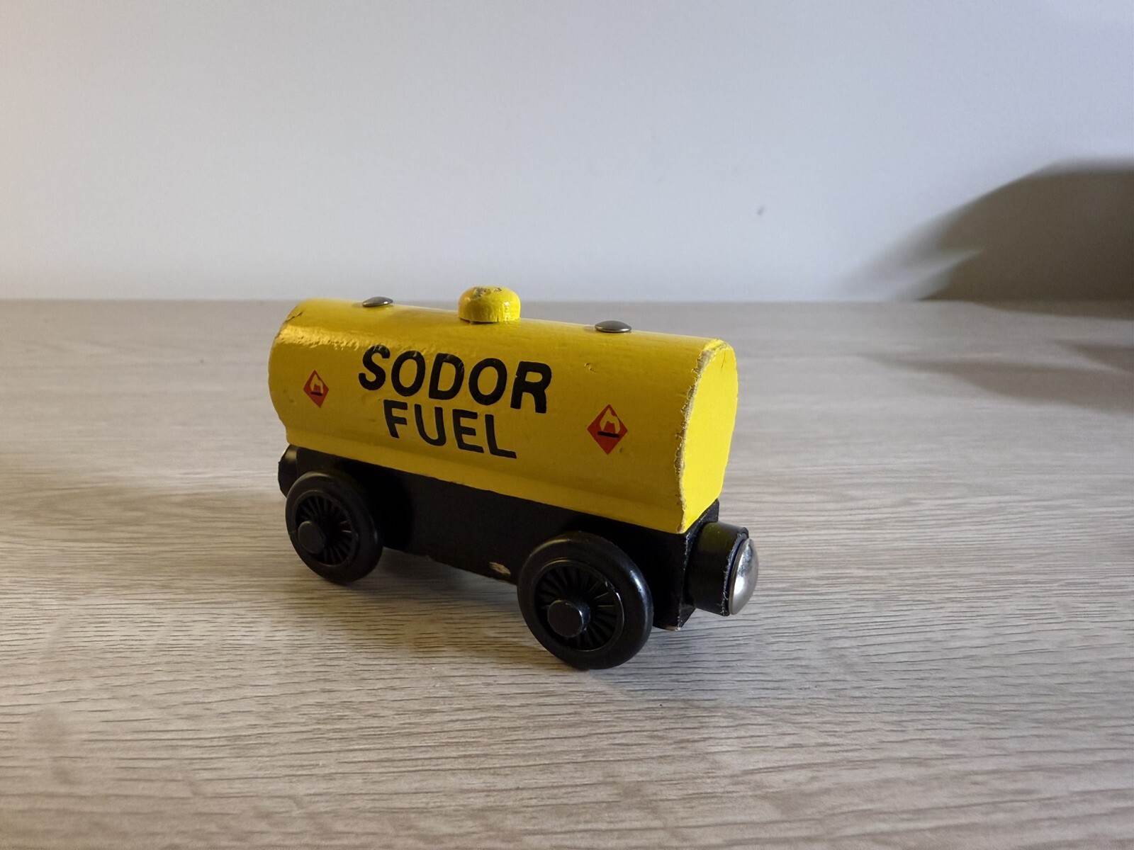 The Thomas & Friends Wooden Train "Sodor Fuel" was manufactured in 2001 as part of the Thomas & Friends franchise. This action figure features a train made of wood, representing a character from the popular children's show. It is a collectible item that appeals to fans of Thomas & Friends and is a great addition to any toy train collection.