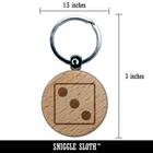 Three 3 Dice Die Engraved Wood Round Keychain Tag Charm