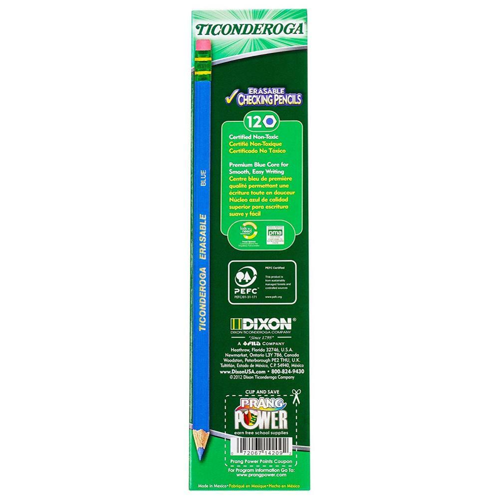 TICONDEROGA Erasable Checking Pencils with Eraser, Pre-Sharpened, Blue, Pack of 1 (12 ct) TICONDEROGA Erasable Checking Pencils with Eraser, Pre-Sharpened, Blue, Pack of 1 (12 ct) PRODUCT DESCRIPTION: Ticonderoga Erasable Colored Checking Pencils have brilliant, non-fading, erasable colors. Use for checking, map coloring, marking on blueprints and proposals, and editing papers. Ideal for teachers, artists, accountants and engineers. Sharpened and ready to use. PMA certified non-toxic. DETAILS: Shipping Weight: 2.4 ouncesDomestic Shipping: Item can be shipped within U.S.International Shipping: This item is not eligible for international shipping. Learn MoreBrand Name: TiconderogaItem Weight: 2.4 ouncesProduct Dimensions: 2 x 0.6 x 7.8 inchesItem model number: 14209Color: BlueNumber of Items: 1Size: Pack of 1 (12 ct)Manufacturer Part Number: 14209 ADDITIONAL PRODUCT INFO: Great for editing, grading, accounting, engineering and moreBrilliant, non-fading, erasable colorPre-sharpened to save you timeTop quality, latex-free eraser provides easy, clean correctionsPMA certified non-toxic HANDLING TIME: We ship orders within 1 business day of receiving payment, sometimes faster SHIPPING We ship out via expedited shipping that usually arrives within 3 business days. IF YOU NEED YOUR ITEM FASTER UPGRADED 2 DAY SHIPPING IS ONLY $2.99 FOR MANY ITEMS. We Do Not Ship to PO/APO Boxes, HI or Alaska. For international shipments- We are part of the eBay Global Shipping Program. For large items that require Freight shipping a valid phone number is required to call and schedule your delivery. Please make sure to provide the correct shipping address during checkout as the address cannot be changed after checkout. We are not responsible for any incorrect or undeliverable addresses. If an item can not be delivered by our shipping service due to address issues your purchase will need to be cancelled and resubmitted with alternate information. RETURN & REFUND POLICY We offer a 30 day refund policy. WE OFFER FREE RETURNS AND WE PROVIDE THE SHIPPING LABLES. Just send us a note through the ebay returns portal and we will send you the label. All items must be returned undamaged in the original package. A restocking fee may apply.