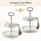 Farmhouse 2 Tiered Tray: This wooden tiered tray comes with a delicate wooden bead garland for decoration, adding an touch of elegant to your home decor. The 2-tier tray features a sturdy metal handle for easy and safe movement. Handmade & Natural Wood: This 2 tiered tray stand is crafted from natural and eco-friendly paulownia wood, 100% handmade by skilled artisans. Each decorative tray boasts a unique texture, and this tiered tray boasts robust construction, ensuring durability and stability for long-term use. Multi-purpose: Perfect for serving, storing, and displaying a variety of items from kitchen essentials to living room decor. You can display it anywhere you like and fill it with many small items and decorations. Various Holiday Decor: This farmhouse decorative tray serves as a versatile option for holiday decorations, such as Christmas, Thanksgiving, Halloween, Easter, Independence Day, family gatherings, housewarming parties, and many other festivals, adding a warm and festive atmosphere to your space. Easy to Assemble: No tools required, install and remove the tiered tray stand in just a few steps. You can break it down into two round trays for individual organizer or decoration, or construct it into a two-tiered tray. Assemble the tiered tray freely according to your preferences.