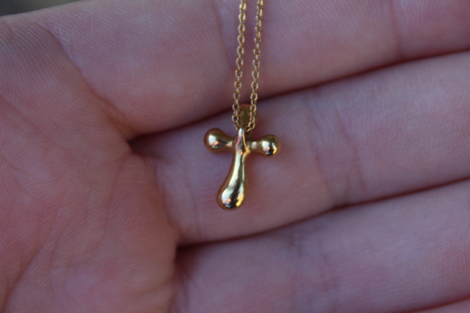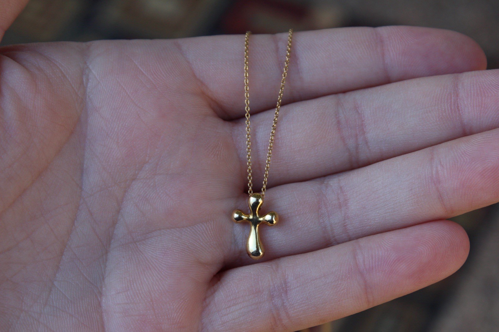 The Tiffany & Co. Elsa Peretti SOLID 18K Yellow Gold Cross Pendant Necklace is a stunning piece of jewelry from the renowned Tiffany & Co. brand. This elegant necklace features a cross pendant made of 18K yellow gold, with a sleek and timeless design by Elsa Peretti. The pendant is perfect for everyday wear or special occasions, adding a touch of luxury and style to any outfit. This necklace is a classic and versatile piece that will be cherished for years to come. 15.5 Inches in length. Also includes a Tiffany & Co box. Not sure if it is originally for this specific necklace or not, but it is authentic as is the necklace. Necklace and charm are 3.6 grams