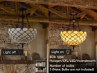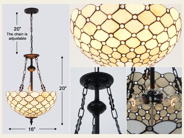 Tiffany Stained Glass Chandelier 3 Lights Vintage Pendant Ceiling Fixture Lamps About this item ★【Fashion Design】Tiffany lamp combines Art Nouveau and modern fashion concepts, handmade lampshade uses shiny jewels to connect the black square prints together, fashion and simple, creating a vibrant and elegant atmosphere. ★【Bulb Type】3*E26 bulb socket, Wall control, compatible with Halogen/CFL/LED/Incandescent (Bulbs not included), you could choose suitable bulbs lighting for your room. ★【Unique Craftsmanship】: Each material of the acrylic lampshade is carefully selected by professional lamp manufacturer, hand welded by exquisite modern craftsmanship. NOT EASY TO FADE, restore the original color and luster by gently wiping after falling dust, a really precious artwork. ★【Wide Application】Tiffany style Ceiling Light, perfect for dining room, living room, bedroom, corridor, entrance, hall,etc. Not only a great choice to any home decor. but also a wonderful gift for your lover, parents, friends and partners. ★【Quality Assurance】: We are a professional chandelier and ceiling light seller, provide 60 days for production defects and 30 days for unsatisfied return and exchange services.if you have any other questions, please feel free to contact us. Product Description Tiffany Kitchen Island Lights is not only reflects your eternal pursuit of fashion, but also shows your noble taste. INSTALLATION: For safety, please cut off the power supply during installation. Sloped Ceiling Adaptable: Yes, Max 15 degree Provide installation video, professional electrician would be highly recommended. DIMENSION: Style: Medieval Semi-Recessed Hanging Light Size: 15.7”/40cm Height: 19.7”/50cm Chain length:19.7in/50cm(Note:the chain is adjustable) Weight: 9lb/4.1kg Specification: Stained Glass Lampshade The lampshade of Tiffany is made of high-grade acrylic. The thickness of acrylic is generally <3mm, which is different from ordinary glass. Well Compatibility 3x E26 Medium Base Bulb ( Max 60Watts per bulb , compatible with Incandescent, LED, CFL or Edison Types. NOT Included.) Unique Craftsmanship Each stained glass is hand welded by exquisite modern craftsmanship. NOT EASY TO FADE, long service life. Details: Material: Metal/Acrylic Bulb type: Halogen/CFL/LED/Incandescent Number of bulbs: 3 (Note: Bulbs are not included) Bulb base: E26 Socket Voltage: 110V-120V Wattage: 40W Tiffany Chandelier brights beautiful colors in the day and perfect at night, for Farmhouse Living room Bedroom Hallway Entryway Kitchen... Payment Delivery details Terms of sales About us Contact us Payment You could make payment via: Delivery details Packages will ship via by UPS or USPS within our handling time,once the package is shipped out ,normally shipping takes about 3-10 working days,but due to different cities and states,shipping time will be different. Terms of sales If you any problem about shipping information, or the item you got : Arrived damaged; Wrong item sent; Missing parts or pieces; Doesn't work or defective; Doesn't match description or photos. Pls click "Contact Seller" and send us message firstly. Then we could have a check and will take responsibility to resolve the problem with you in good communication. About us Our company specializing in selling all kinds of light fixtures,such as ceiling fans,chandeliers,crystal lights,retro lamps,pendant light,etc. If there's any light fixture you are interested,pls feel free to contact us for more details. Contact us Normally your message will be replied in 1 business day,If after 24 hours you do not receive our reply,please kindly re-send us the message,because sometimes ebay message system will have technical problem,so your message can't send to us successfully.