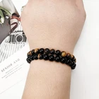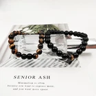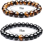 Tiger Eye Bracelet For Men Women Black Obsidian Bracelet Triple Protection Bracelet 8mm Tiger Eye Stone Obsidian Yoga Beads Bracelets (A Bright black)