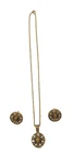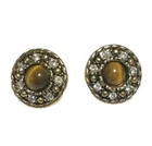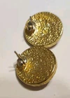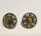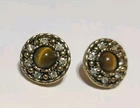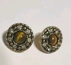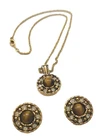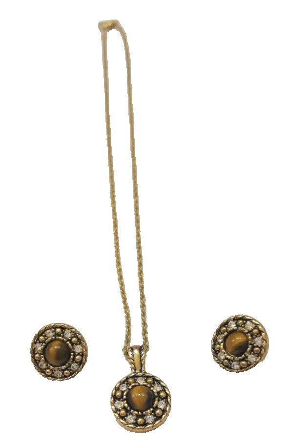 Elevate your accessory game with these vintage gold-tone earrings and matching necklace, showcasing the timeless elegance of Tiger's Eye stone. These stud-style earrings and necklace feature a cabochon round cut Tiger's Eye as the centerpiece, complemented by additional stones that add depth and character to the design. The warm brown hues of the main stone perfectly harmonize with the buttery gold finish, creating a bohemian beauty that's versatile for any occasion. The earrings are thoughtfully designed with a butterfly closure to ensure a secure fit for your lobes. The necklace is 18" and has a lobster closure. The combination of the round shape and prong setting ensures that the stones are firmly held in place, while the intricate details of the piece reflect a commitment to quality craftsmanship. Whether you're dressing up for a night out or adding a touch of sophistication to your daywear, this matching set will provide a stylish addition to your jewelry collection. Beautiful Earrings and necklace that would make a nice gift. See Photos for further description.