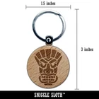 Tiki Mask Hawaii Luau Engraved Wood Round Keychain Tag Charm
