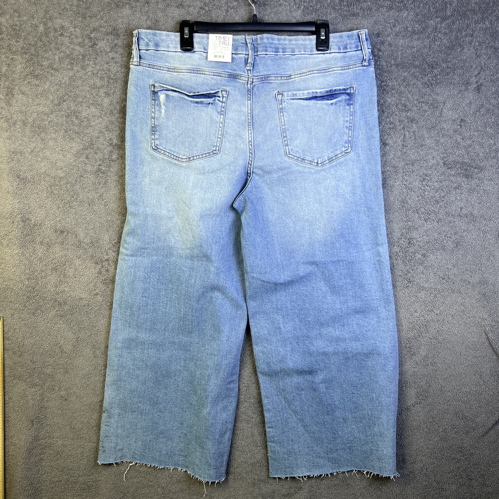 Elevate your denim game with these Time And True women's jeans in a classic blue shade. Crafted from 99% cotton denim, these jeans feature a high-rise waist and wide-leg fit, with a button closure and 5-pocket design. The stretchy fabric and medium wash make them perfect for all seasons, while the solid pattern and accents like buttons add a touch of sophistication. Ideal for women who appreciate a timeless look, these jeans are available in size 18 with a waist size of 38 inches. They are machine washable and easy to care for, making them a practical addition to any wardrobe. Add these versatile jeans to your collection today and step out in style.