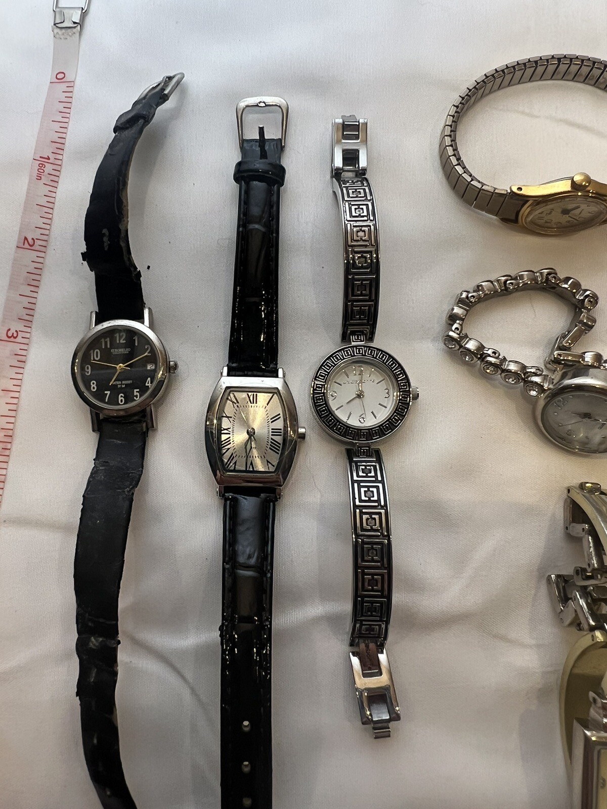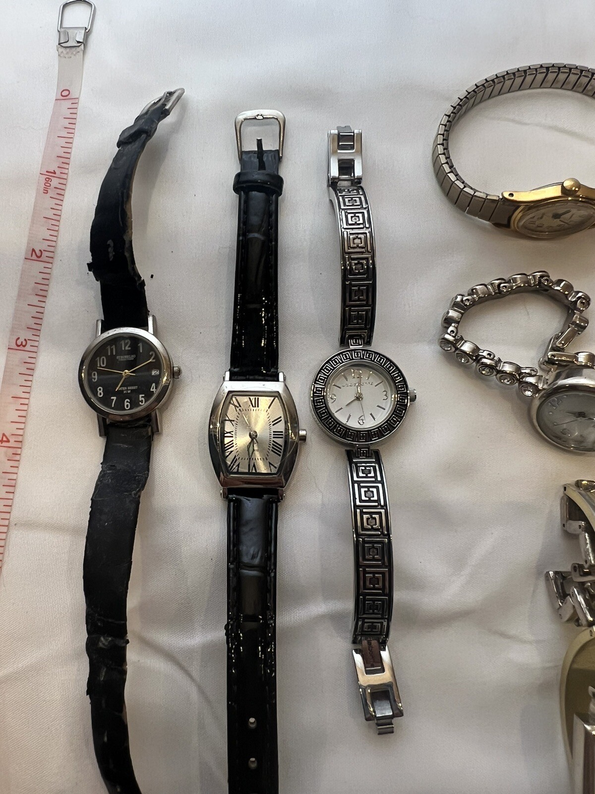 8 vintage women’s watches ..untested…may just need batteries …or used for parts Two are timex One is Strobelzo One is Liz Claiborne Four are unbranded Good condition…the leather straps have some wear…one leather strap is very worn Please see pictures From a smoke free home