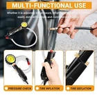 Tire Inflator Kit with Pressure Gauge Lock On Air Chuck Long Hose for Cars SUVs Fitment: With an accurate measuring range of 60psi, this high flow tire inflator is suitable for all types of cars, SUVs, trucks, motorcycles and trailers. High strength lock on chuck enhance grip strength for stability, working for short valve stems. The high-flow design ensures that the inflation process is fast and efficient, saving time Features: 1) Equipped with a high precision pressure gauge to ensure accurate pressure readings. Easy to monitor the tire pressure while operating, avoiding the safety of driving due to too high or too low pressure, and ensuring that the tires are always in the best condition. Also includes a rubber protector, which protects the gauge from damage in all aspects and ensures that the pressure gauge can operate normally in high or low temperature environments 2) This tire inflator with pressure gauge integrates tire pressure checking, inflation and deflation functions, and is able to meet a wide range of tire maintenance needs. Whether it is adjusting tire pressure, inflating or deflating, it can be easily done with simple and convenient operation 3) Manufactured from high-quality steel and brass for superior durability and corrosion resistance, ensuring long-lasting performance in any environment. The tire inflator feature a secure, leak-proof design with precise brass fitting and sealing capabilities, ensuring reliable connections and preventing air leakage under high pressure Package included: tire inflator with pressure gauge Payment Shipping Return & Warranty Leave feedback Contact us Payment 1.We accept PayPal payment and many other payments. Items will be shipped within 1 business day of receiving full payment. Shipping 1.All items will be shipped out in 1 business day,no expedited service available. 2.Our items will be delivered within 4-6 business days. 3.We have multiple warehouses in US, and will choose the nearest one for shipping, according to your address and our inventory Return & Warranty 1. 60 Days Free Returns, please notify us within 60 days after you've received your purchased item. 2. All return requests must be submitted through your eBay account. 3. Return shipping shall be the responsibility of the buyer. We pay the shipping when it is our fault. 4. Items to be returned must be in resalable condition. 5. All returns are for refund ONLY. No exchange accepted. Leave feedback 1.If you are not satisfied for any reasons, please do not be so quick to leave negative/neutral feedback. We work hard to make sure EVERY CUSTOMER 100% SATISFIED and resolve any problems for you and always leave positive feedback to all our customers. 2.If you are satisfied with the product you received, please kindly leave us a positive feedback and 5 scores DSR. Thanks! Contact us 1.Any Questions,Just feel free to contact us on eBay.We will reply you in 1-2 business day.