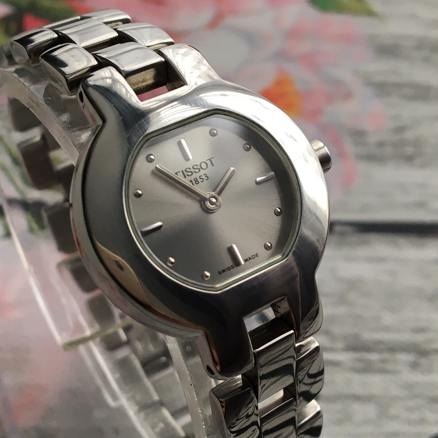 Tissot Watch Swiss Ladies 24mm All Steel Sapphire Glass Silver Grey Dial. A stunner of a watch featuring a grey / silver sunburst dial detailed with polished dot and baton hour markers with polished hands. The watch is in excellent condition for pre-owned negligible blemish under scrutiny. The sapphire glass is in perfect condition. Original signed bracelet will fit up to a 6.5 inch wrist. A fresh battery has been installed and resealed. The case measures approximately 24mm excluding the crown. No original box or papers Will be sent in an aftermarket box for safe transit. PLEASE NOTE DUE TO CONTINUED DELAYS, LOST POST AND CUSTOMS ISSUES I DO NOT POST TO AFRICA, SOUTH AFRICA, ITALY, ISRAEL, GERMANY AND SOME OTHER DESTINATIONS SO PLEASE CONFIRM YOUR DESTINATION BEFORE BIDDING.