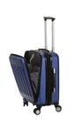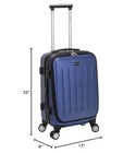 Description This carry on is made of ABS. This material is extremely lightweight, durable, and protects the contents of your luggage. Front zippered compartment allows for quick-access to items. Fully padded laptop pocket, fits up to 15" laptop. Silent dual casters, 4 spinner wheels rotate 360 degrees for easy maneuverability. This luggage allows you to pack more while avoiding the excess weight surcharges imposed by most airlines. Expandable. One touch Aluminum handle. 5 year . 22"X13"x9" (with wheels) weighs 7 lbs. 22"X13"x9" (with wheels) Lightweight durable ABS material Multi-directional spinner wheels Front zippered quick access compartment, expandable Fully padded laptop pocket