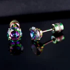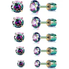 Pack of 5 Flat back studs--2/3/4/5/6mm Rainbow CZ Earrings for women, men Product Features: Pack of 5 Flat back studs--2/3/4/5/6mm Rainbow CZ Earrings for women, men Metal--Titanium, Clolorful gold plated 316L surgical stainless steel Hypoallergenic for Sensitive Ears Gemstone -- AAA+ Rainbow Black Cubic Zircona Simulated Diamond Cut Post -- length : 6mm, 20g (0.8mm gauge) , Screw Back Can also wear backward Fashion Earrrings Set --a surprise to birthday, anniversary, Mother’s day, Valentine’s Day, Christmas and wedding.