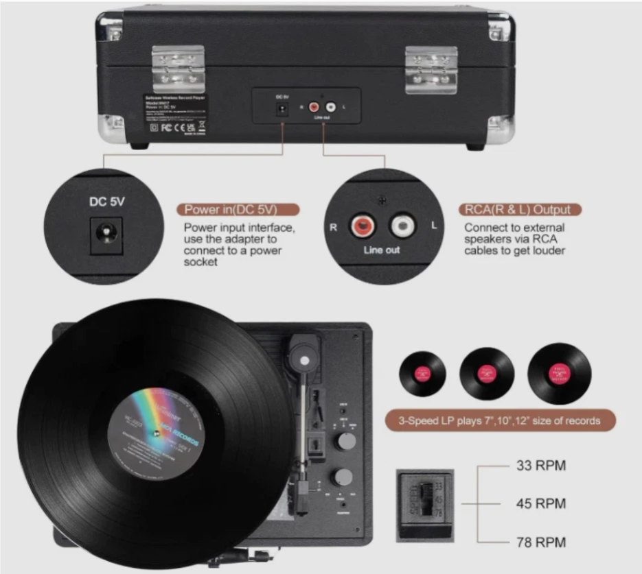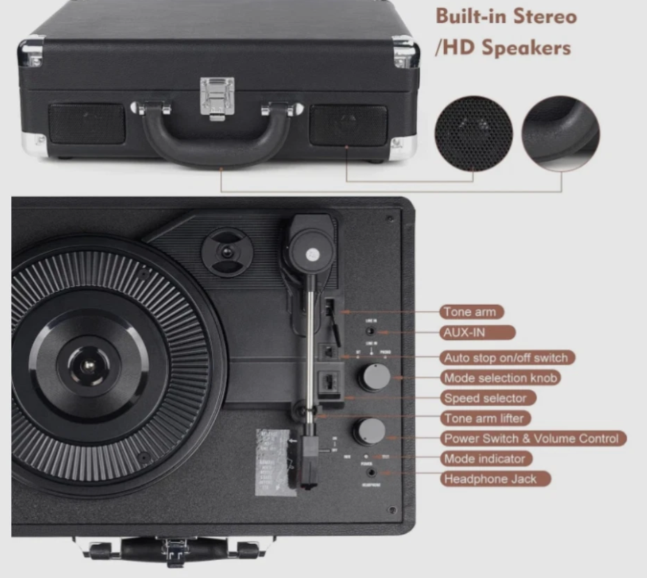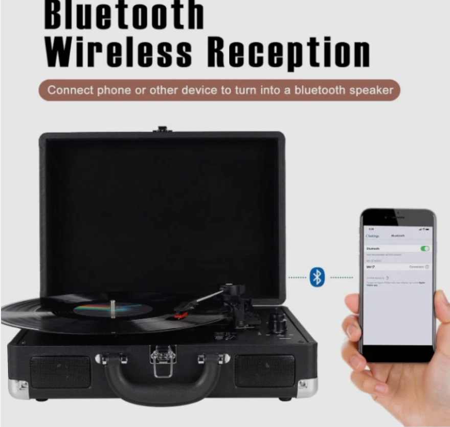 Tocadiscos Bluetooth Tocadiscos para Vinilo con Altavoces, Maleta vintage NUEVO Conexión inalámbrica Bluetooth: el altovoz Bluetooth integrado puede reproducir audio MP3 o audio de teléfono inteligente a través de una potente conexión de transmisión Bluetooth. La señal Bluetooth es estable y la conexión es más rápida, lo que le permite disfrutar de su música favorita con mayor libertad. Tocadiscos de tres velocidades: admite tres velocidades de reproducción (33-1/3, 45 o 78 RPM) y tres tamaños de disco (7"/10"/12"). El tocadiscos incluye un adaptador de 45 RPM. Altavoces HD integrados: 2 altos estéreo integrados. El tocadiscos también se puede conectar a altos domésticos externos a través de salidas RCA. Equipado con un conector para auriculares de 3,5 mm para conectar auriculares. Interruptor de parada automática: deja de girar una vez que el disco llega al final del disco. Cambio rápido de modo (Bluetooth/entrada auxiliar/phono) para su comodidad. Es perfecto para usar cuando necesita relajarse, divertirse, etc. Conversión de audio: converte señales de audio analógicas de discos de vinilo a archivos de audio digitales, como MP3, WAV y otros formatos. SHIPPING: We offer FREE shipping on all orders! We ship within Three business days of payment, usually sooner. We use a selection of shipping services such as UPS, FedEx, USPS etc. We only ship to the lower 48 states, no APO/FPO addresses or PO Boxes allowed. Local pickups and combined shipping options are not provided at this time. PAYMENT: We accept payment by any of the following methods: PayPal Please pay as soon as possible after winning an auction, as that will allow us to post your item to you sooner! FEEDBACK: Customer satisfaction is very important to us. If you have any problem with your order, please contact us and we will do our best to make you satisfied. Thank you for shopping with us!