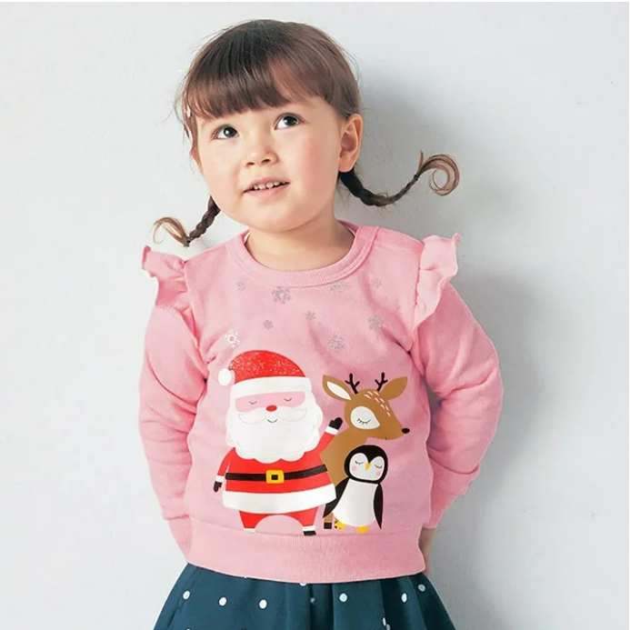 Toddler Girls Christmas Reindeer Long Sleeve Sweatshirt Kids Holiday Clothes