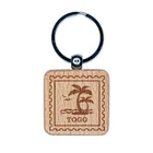 Togo Travel Palm Tree Beach Ocean Waves Engraved Wood Square Keychain Tag Charm