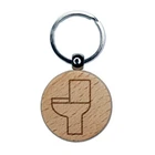 Toilet Symbol Outline Engraved Wood Round Keychain Tag Charm