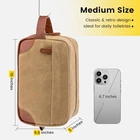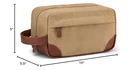 Large capacity & organized compartments: Size 10 x 5 x 5.5 inches. 1 Main compartment which is roomy to fit facial cleanser, electric shaver, travel shampoo, and other toiletries. It also has 3 small mesh pockets and 1 long mesh pocket with a zipper inside to store all of your little toiletries without getting disorganized and easy to find. 1 front zipper pocket that provides extra storage with ease Quality & water-resistant material: The toiletry travel bag is made of sturdy & wearable canvas material that has no unpleasant smell. The canvas and PU leather make the bag itself very well-constructed to keep the shape and protect your toiletries from splashed water Multipurpose for usage: This Dopp kit will meet your needs, whether you are on a short trip or traveling for business, it's big enough to fit bathroom supplies and easier to grab things during the trip. If you want to store other small items and makeup, it can be a great storage pack or cosmetic organizer, this bag is all the rage for storage of toiletries in the bathroom, dressing table Well-designed & multicolors: The canvas shaving bag is classic and stylish, we offer different colors for everyone to choose from. As a good choice to send your husband and friends, it has nice color, size, and quality feel, even using for a long time it remains attractive and stands up well Smooth SBS zipper & convenient handle: Leather handle makes the Dopp kit for toiletries easier to carry and hang, reinforced bottom with leather makes it wearable. The combination of zipper & zipper ear makes it easier to hold and zip up and down. This toiletry bag is in a perfect size that can be packed up and tucked away in the suitcase